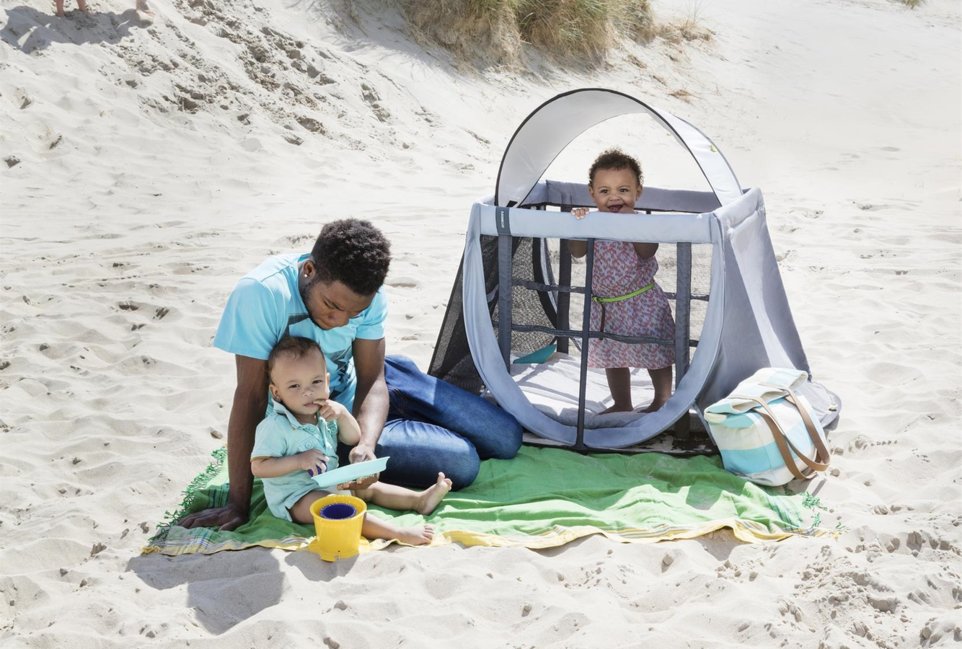 Bescherm je kleine spruit tegen de zonnestralen in z'n reisbed dankzij dit zonnescherm van AeroMoov. Ideaal voor op vakantie!