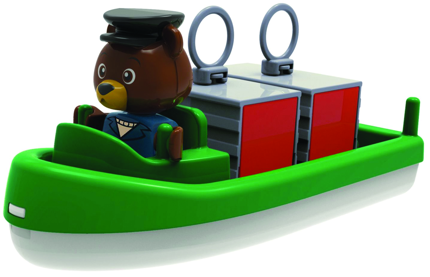 Laat kapitein Bo het vrachtschip door de sluissystemen van het kanaal heen navigeren. Uiteindelijk vaart de boot de haven in en kan hij aanmeren. Kapitein Bo kan ook vanaf het land een ritje maken in het water met de amfibieauto. Steek de megabrug van deze bijzondere set over, waar de kraan zal helpen om containers op het voertuig te laden. Door te draaien aan het schoepenrad wordt het water in beweging gebracht in de kanalen.
