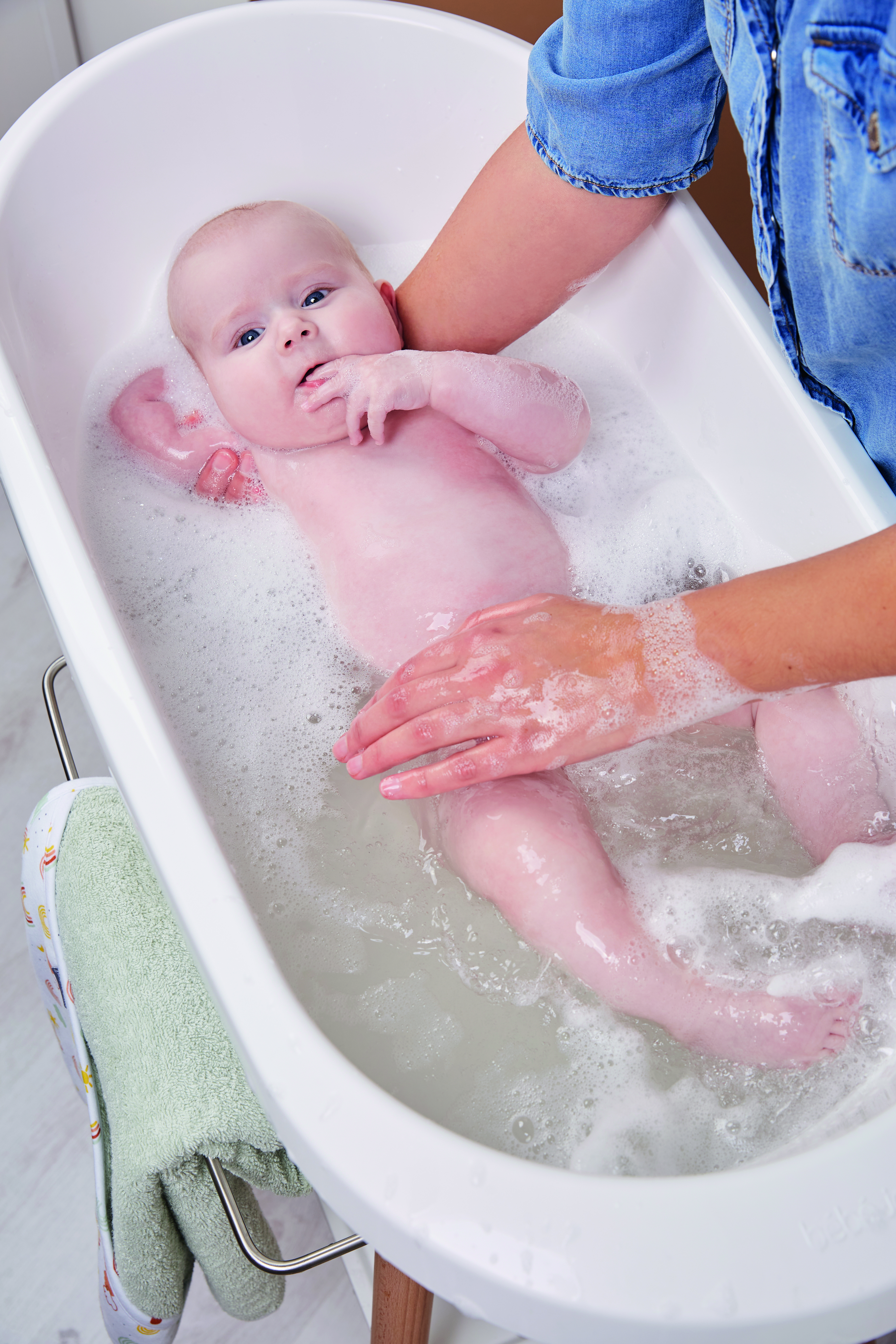 De zeer stabiele badstandaard Sense heeft poten van gelakt FSC-gecertificeerd beukenhout. Dit geeft de badstandaard een warme, moderne uitstraling. De standaard is voorzien van handige snufjes; aande voorkant is een handdoekrek bevestigd. Het ruime kunststof plateau geeft plaats aan bijvoorbeeld een shampooflesje, washandje(s) of wasgel. Daarmee heb je alle noodzakelijke spulletjes bij de hand om samen met je kleintje in alle rust te kunnen genieten. Een innovatief kliksysteem zorgt ervoor dat het badje eenvoudig op de standaard kan worden geplaatst en verwijderd. Na het vastklikken kun je ongestoord en veilig je kleintje in bad doen.