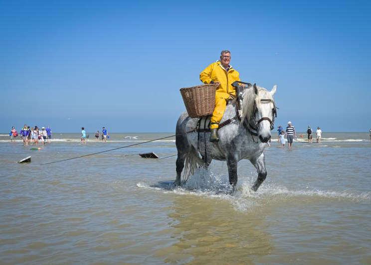 De garnaalvissers trekken het hele jaar door naar zee, behalve in de koude wintermaanden. Tijdens de vakantieperiodes ook sessies waarop ze hun vaardigheden demonstreren.