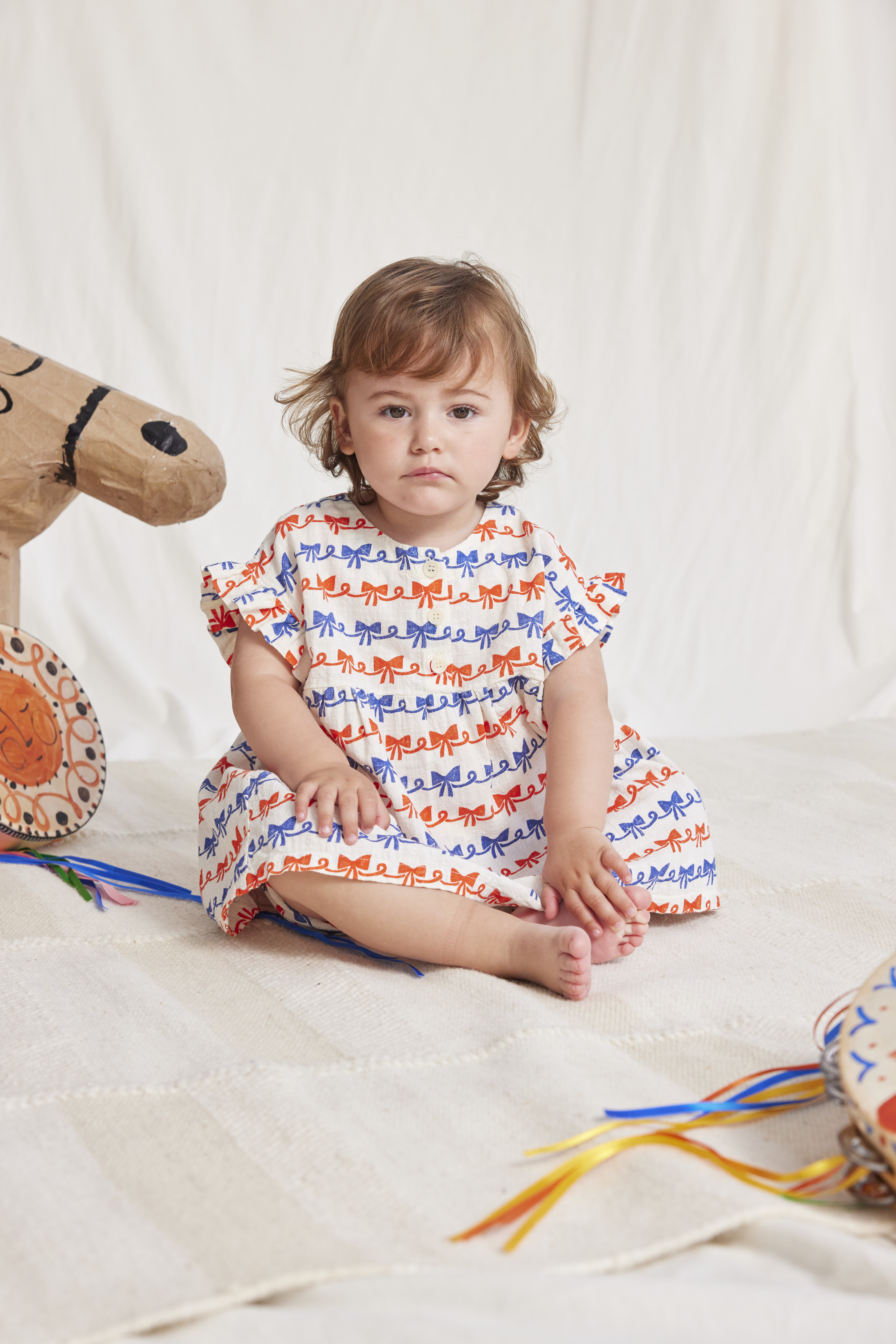 Bobo Choses / baby woven dress / ribbon bow all over - 9 M