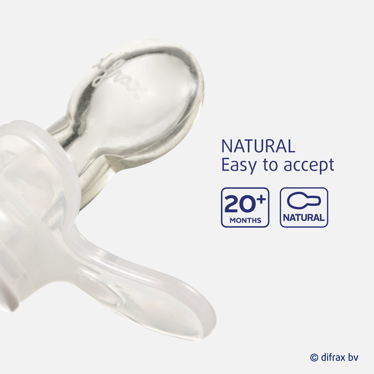 De Difrax fopspenen hebben een vlindervormig schildje. Hierdoor blijft het neusje vrij en sluit de speen mooi op het gezichtje aan. De gaatjes in het schildje zorgen voor extra luchttoevoer, dit voorkomt huidirritatie. De grootte van het fopspeenschildje is geschikt voor kindjes vanaf 20 maanden. De Natural speentjes hebben een ronde symmetrische vorm, wat de meeste baby's het makkelijkst accepteren. De Difrax fopspenen zijn in samenwerking met logopedisten en tandartsen ontwikkeld.
