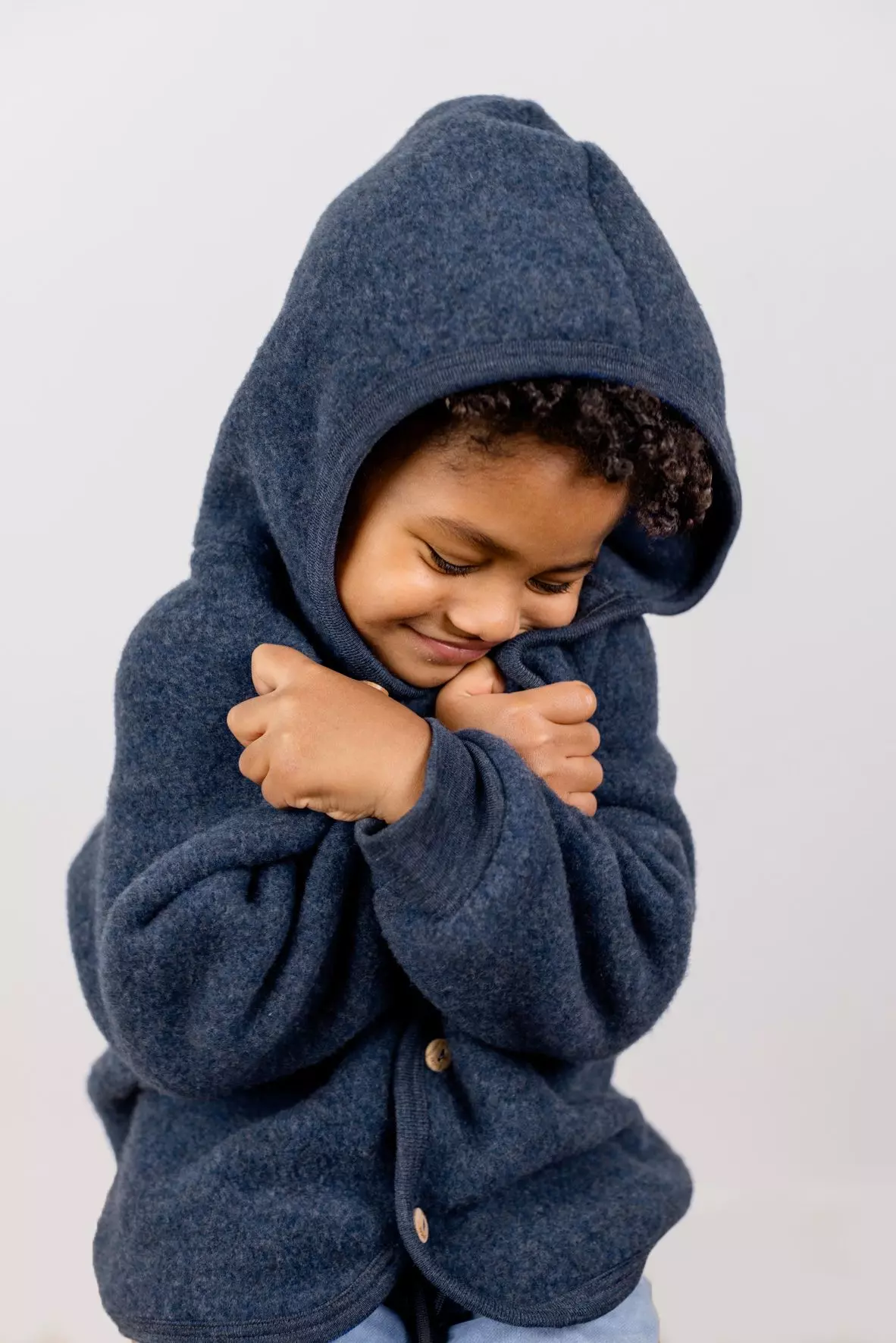 Engel Natur Jas met Kap Donkerblauw - 1 maand