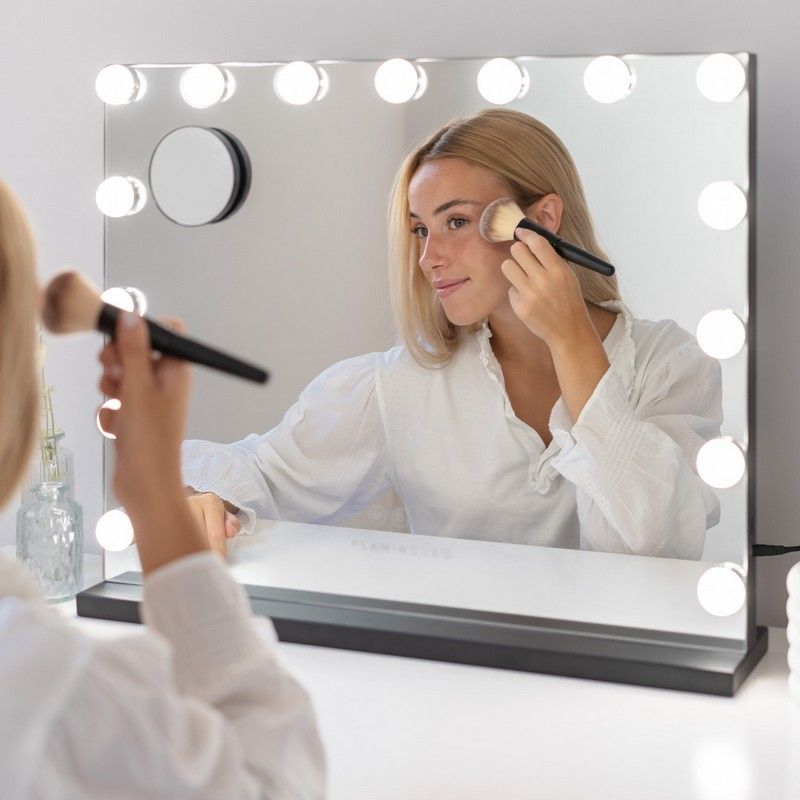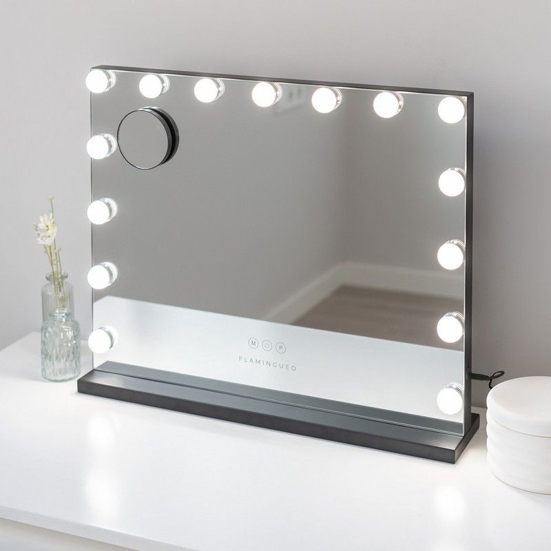 Op zoek naar Flamingueo Spiegel Kim Black met 15 Hollywood LED Lights - 58x46x12 cm - 3 Lichtstanden - Touch Knoppen - met USB-uitgang? Bekijk ons grote assortiment. Bestel eenvoudig online of kom eens langs.