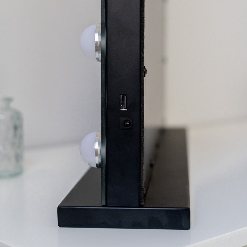 Flamingueo Spiegel Kim Black met 15 Hollywood LED Lights - 58x46x12 cm - 3 Lichtstanden - Touch Knoppen - met USB-uitgang