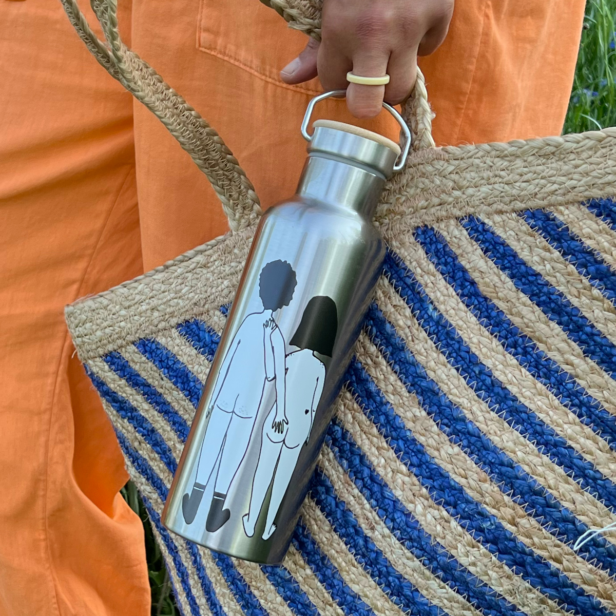 Helen B Isoleerfles Naked Couple Back 750ml - RVS/Bamboe - 7.5x25.5 cm - enkel Handwas