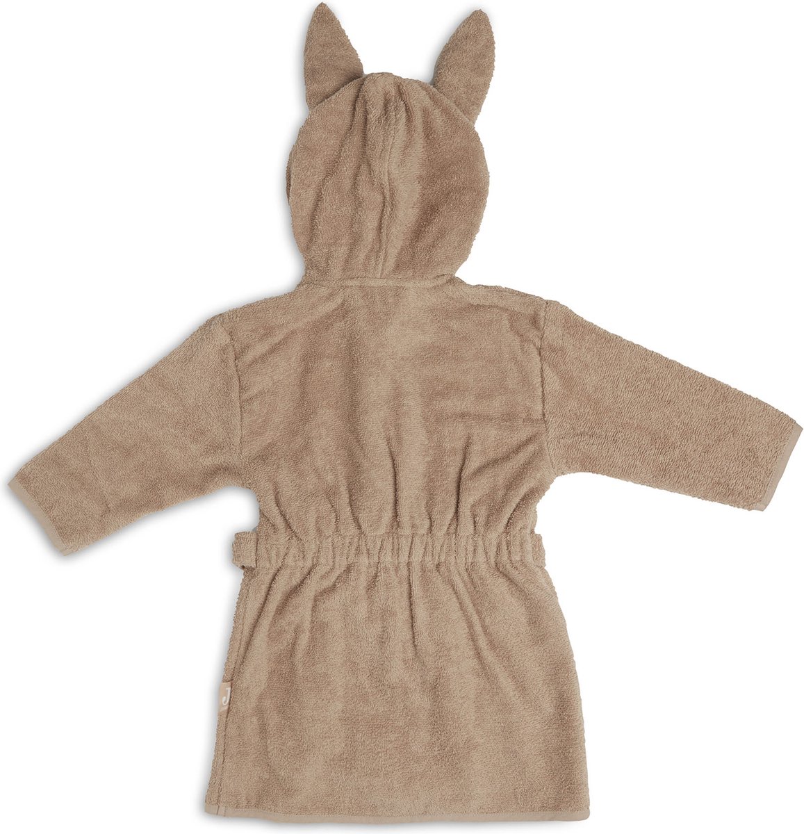 Hoe leuk is dit badjasje? De badjas is perfect om te gebruiken na het badderen, douchen of zwemmen. De zachte badstof neemt gemakkelijk water op en houdt daarmee jouw kleintje lekker warm. De vrolijke capuchon met oren droogt gemakkelijk de haartjes. Het badjasje is ook handig om mee te nemen op vakantie of mee naar een logeerpartijtje. Het badjasje heeft een handig drukknoopje om hem dicht te houden bij het dragen, elastiek in het rugpand voor de perfecte pasvorm en de ceintuur zit aan het badjasje vast zodat je hem niet kan verliezen.