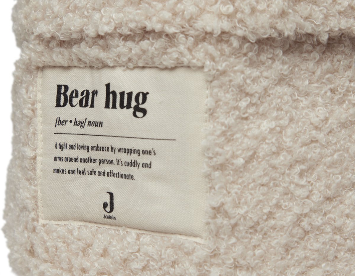 Praktisch mandje van zachte aaibare Bouclé stof om spulletjes in op te bergen. Het mandje is 14 cm hoog en heeft een diameter van 18 cm. Op de voorkant van het mandje vind je het leuke 'bear-hug' logo. Dit mandje is superhandig voor op de commode voor de kleine verzorgingsspulletjes zoals een manicuresetje, borsteltje en een thermometer. En tegelijkertijd een leuke accessoire om de babykamer net dat extra sfeer mee te geven. Met dit opbergmandje houdt je commode lades geordend. Een mandje voor sokjes, voor verzorgingsproducten en voor slofjes. Daarnaast staat dit ook nog een super leuk op de commode! Ook handig voor in de woonkamer voor klein speelgoed.