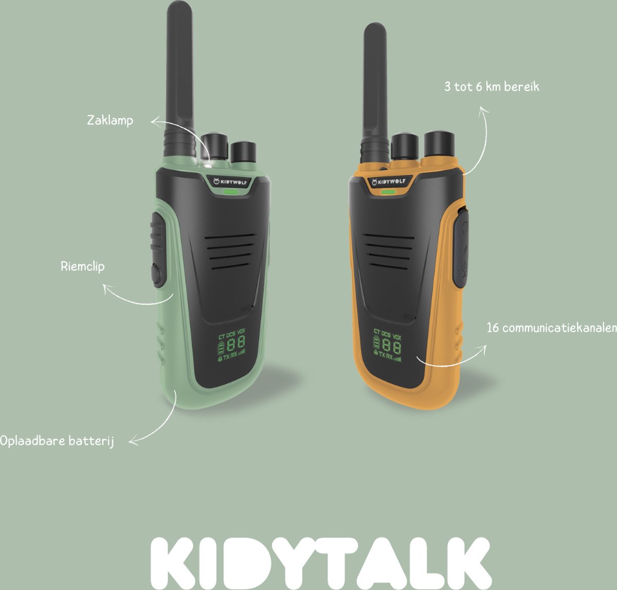 De KIDYTALK is de ideale metgezel voor avonturen in de buitenlucht of thuis en biedt duidelijke, veilige communicatie tot op een afstand van 6 km. Deze walkietalkie is ontworpen voor zowel kinderen als volwassenen en combineert robuustheid, een lange levensduur van de batterij en praktische functies!