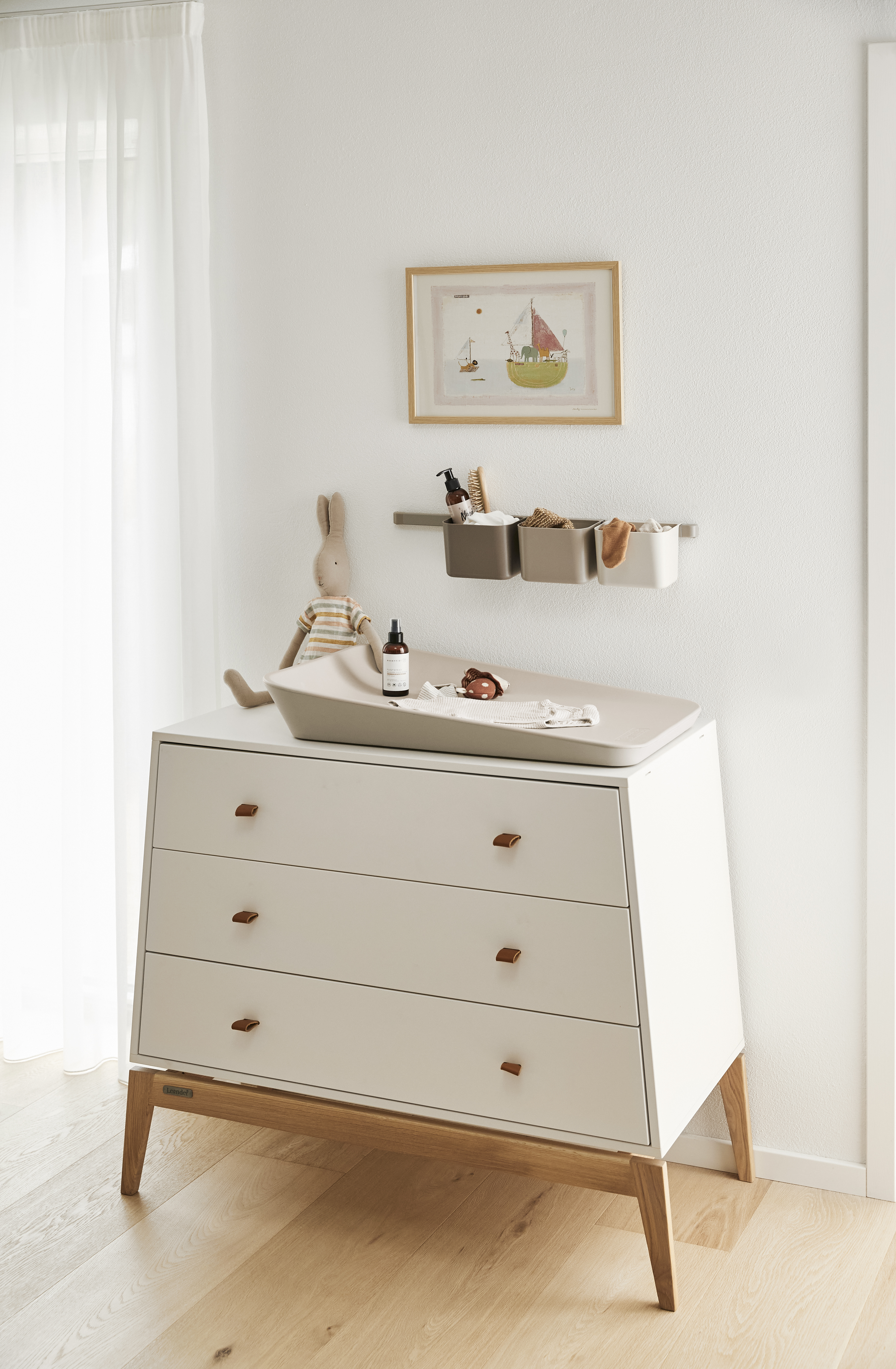 De Leander Luna Commode is een elegante en praktische toevoeging aan de babykamer. Met zijn strakke Scandinavische design en stevige constructie, biedt deze commode niet alleen een stijlvolle uitstraling, maar ook veel opbergruimte. Dankzij de drie ruime lades met soft-close systeem kun je moeiteloos babykleertjes, luiers en andere essentials netjes opbergen.