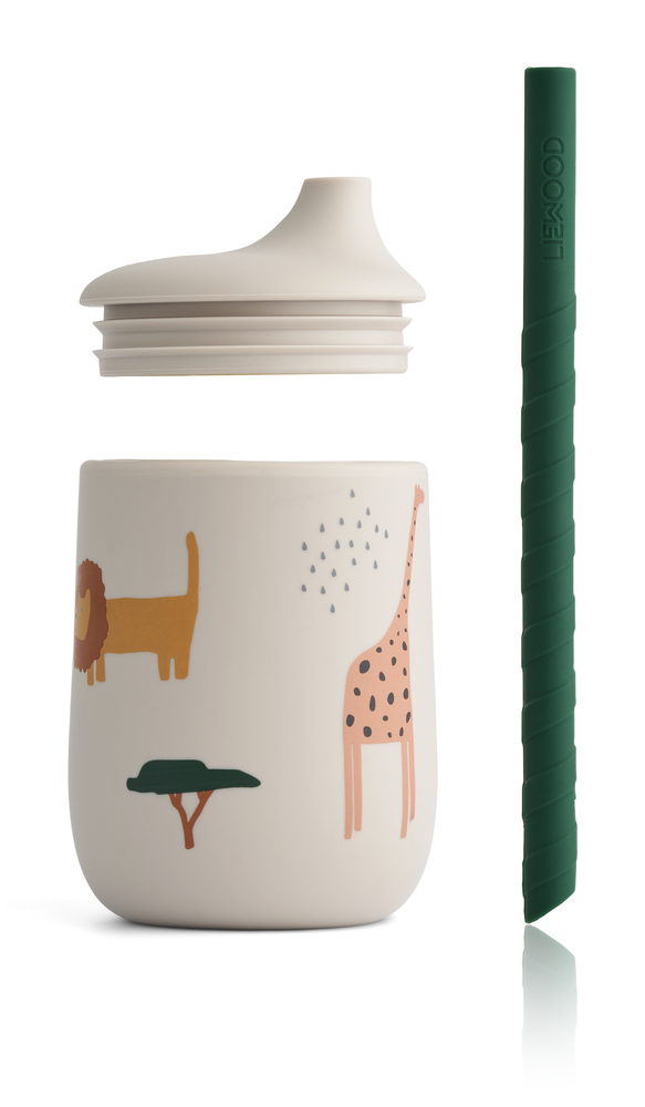 Liewood Drinkbeker met Rietje Ellis Silicone 140 ml Safari Sandy Mix