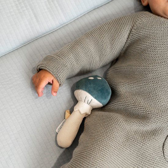 Rammel deze betoverende paddenstoel! Als je er mee speelt hoor je een plezierig geluidje. De rammelaar stimuleert de hand-oogcoördinatie, is van heerlijk zacht materiaal gemaakt en kan makkelijk door kleine kinderhandjes vastgepakt worden.