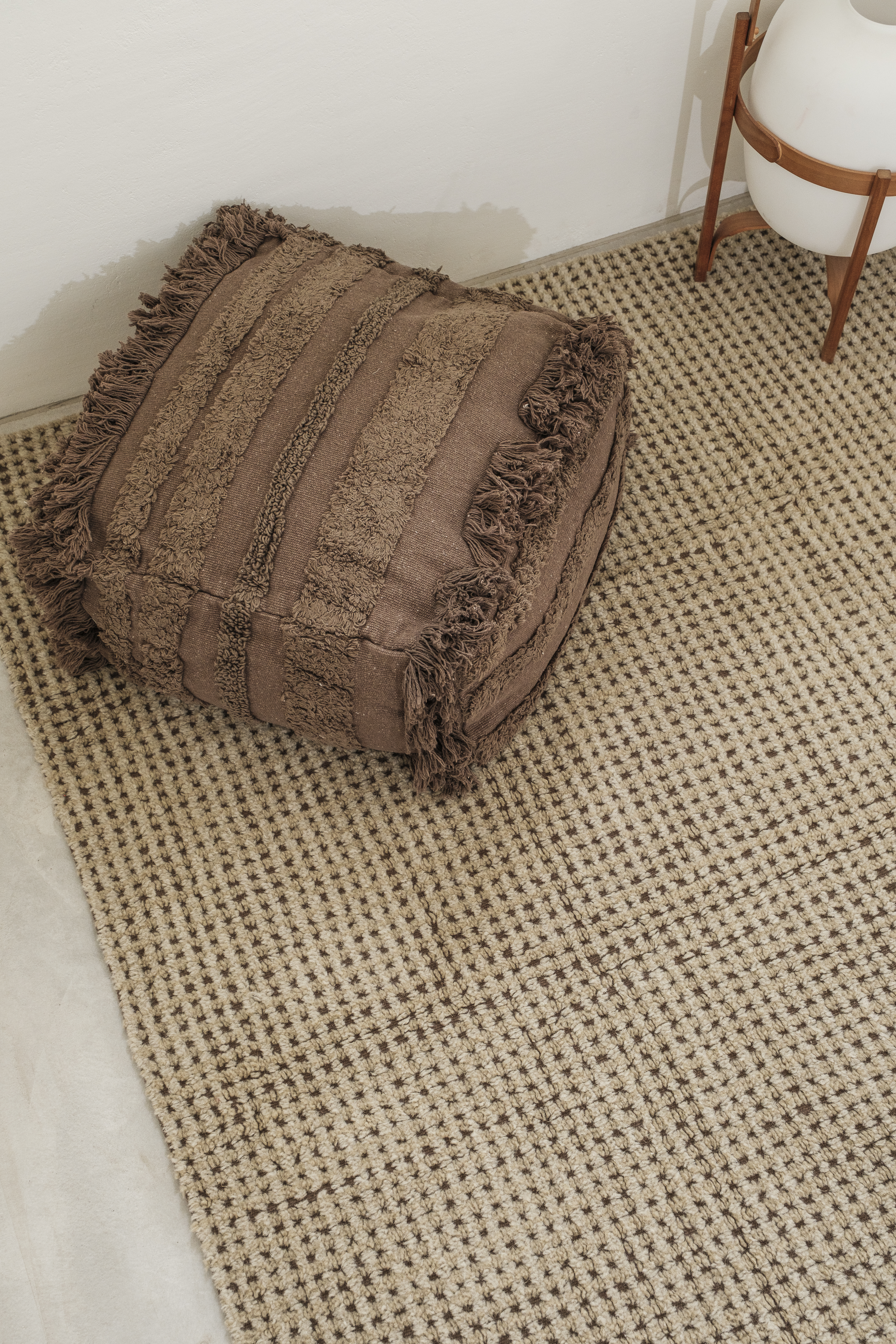 Een zorgvuldig handgemaakt wollen vloerkleed met kleine, onvolmaakte vierkante vormen die in de loop van de tijd geleidelijk hun schoonheid onthullen. Elk vierkant is in twee richtingen genaaid - eerst de ene kant op, dan de andere - waardoor een unieke textuur ontstaat waarbij de draad en de stof naadloos in elkaar overlopen, geleid door de hand van de ambachtsman. Ontworpen met een rijke bruine en natuurlijke canvas basis, geaccentueerd met subtiele mos- en basilicumtinten, brengt dit stuk een vleugje natuurlijke elegantie in elke ruimte. Het maakt deel uit van de Unexpected Collection en is verkrijgbaar in zes maten en zes kleuren en biedt veelzijdige opties om elk interieur aan te vullen. Dankzij ons WOOLABLE-patent® is dit vloerkleed machinewasbaar, lichtgewicht en zachter dan traditionele getufte wollen vloerkleden. Elk wasbaar wollen vloerkleed is verpakt in een katoenen draagtas die kan worden gebruikt voor opslag en bevat een gratis antislip onderlaag om onder het vloerkleed te passen en het op zijn plaats te houden. Wollen vloerkleden kunnen vezels afgeven wanneer ze nieuw zijn of tijdens gebruik. Dit is een natuurlijke eigenschap van de wolvezel. Leg het vloerkleed 2-3 dagen plat na het uitpakken. Borstel of stofzuig daarna voorzichtig om de stapel te herstellen.