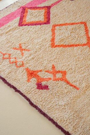 Een vleugje kleur voor uw interieur! Dit levendige, op de Berbers geïnspireerde, wasbare vloerkleed heeft klassieke diamant- en visgraatpatronen in heldere tinten oranje en fuchsiaroze. Een gewaagd stuk om elke kamer te versieren, versterkt door de neutrale tinten van de achtergrond.