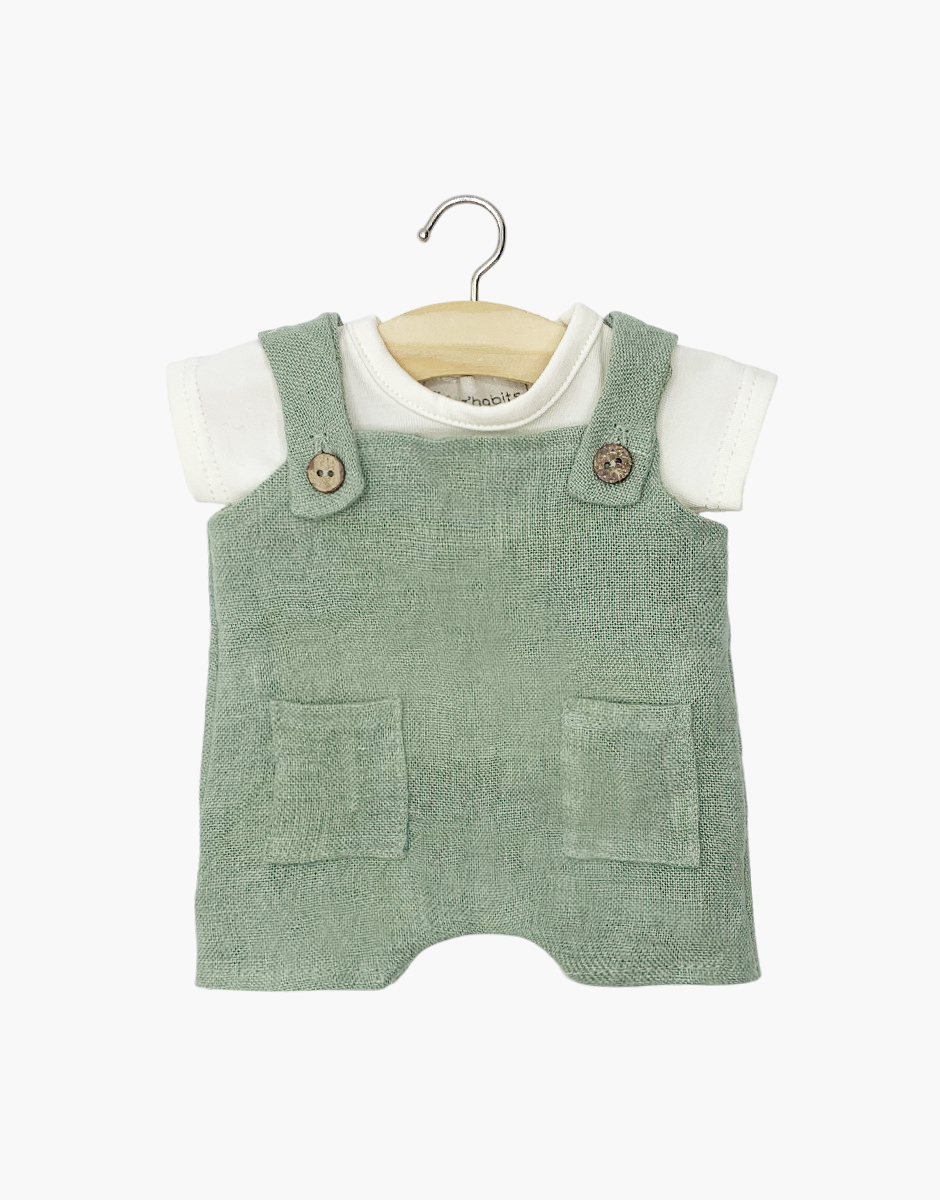 Productinformatie "Minikane Salopette Antonin Linnen Saliegroen + Wit T-Shirt"