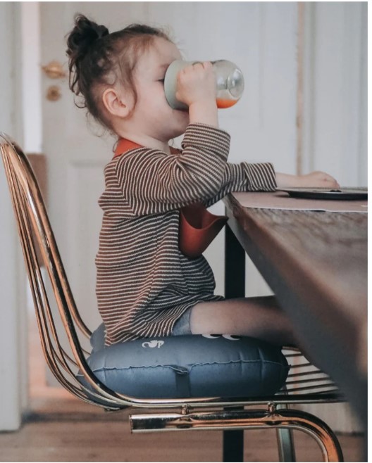 Opblaasbaar zitkussen voor het kind dat te groot is voor de kinderstoel en