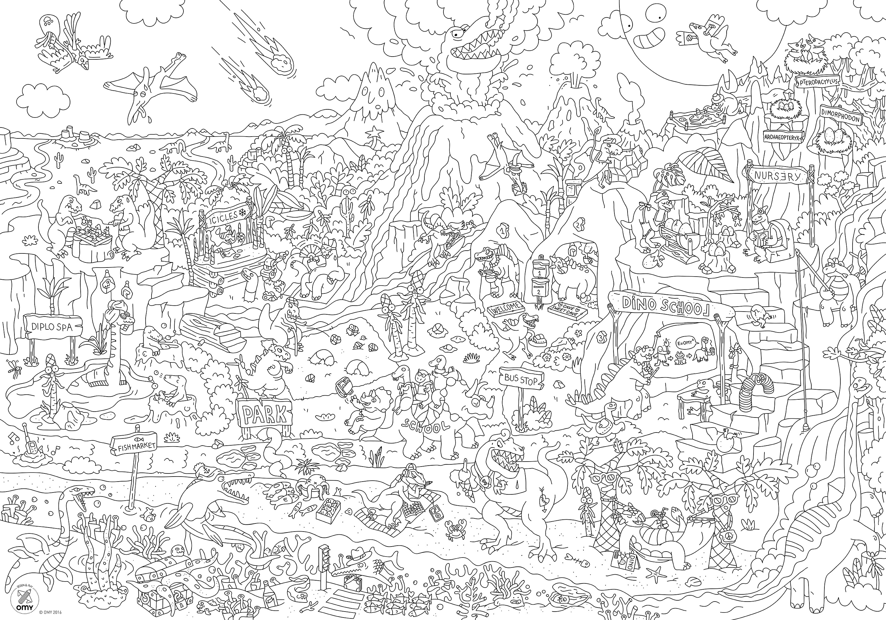 Een lijn vol humor en een veelheid aan details, een echte grafische reis om te delen tussen alle generaties. Een grenzeloze artistieke ruimte om alleen of samen met anderen te kleuren, zich op de grond te ontvouwen, aan de muur te hangen of als tafelkleed te gebruiken.