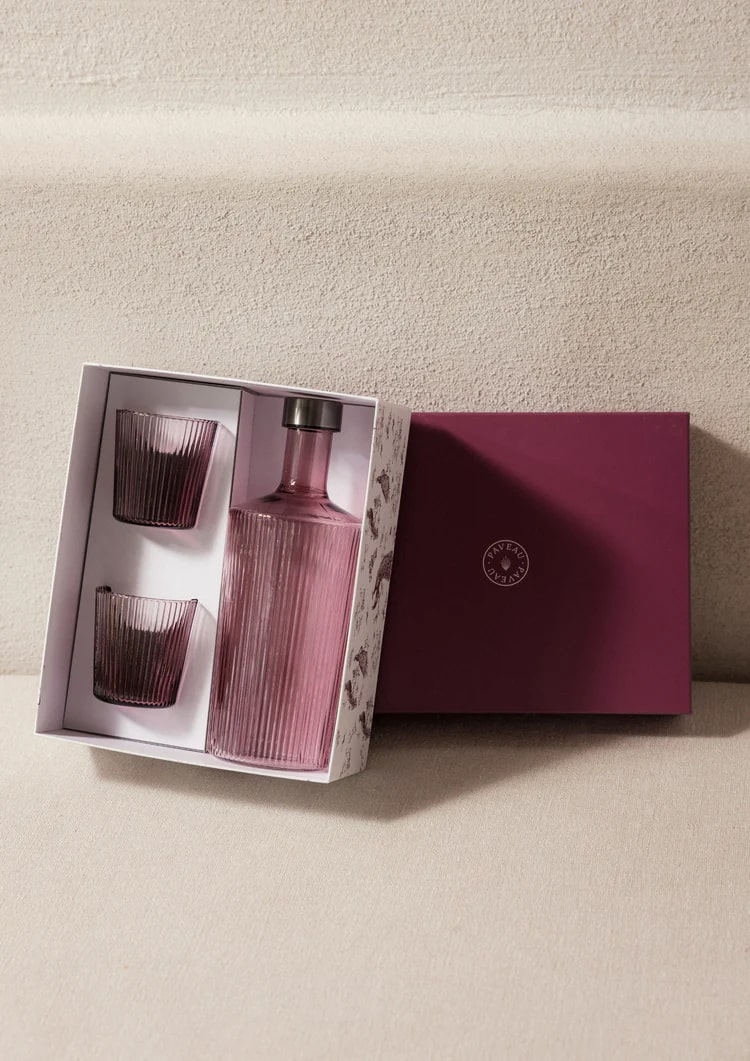 Paveau Set Ribbed Fles/Karaf Broome met 2 Glazen - Karaf 1.25l & Glazen 180ml