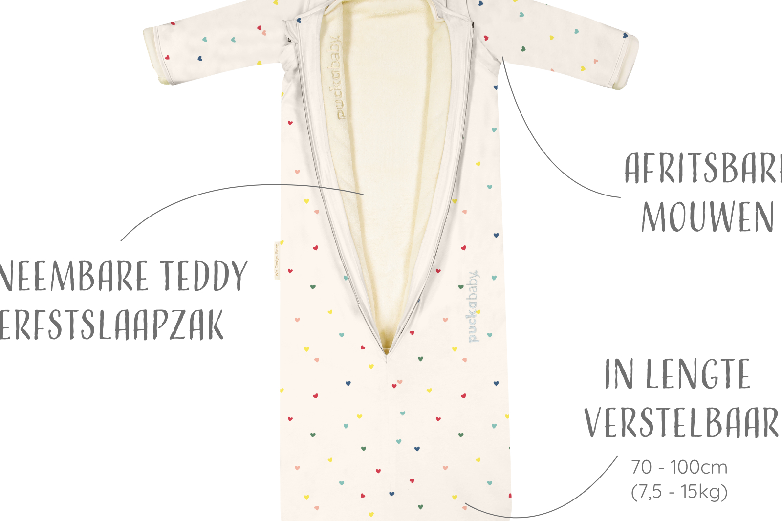 Productinformatie "Puckababy Slaapzak The Bag 4 Seizoenen Hearts Confetti 6 maand tot 2,5 jaar - 100 cm"