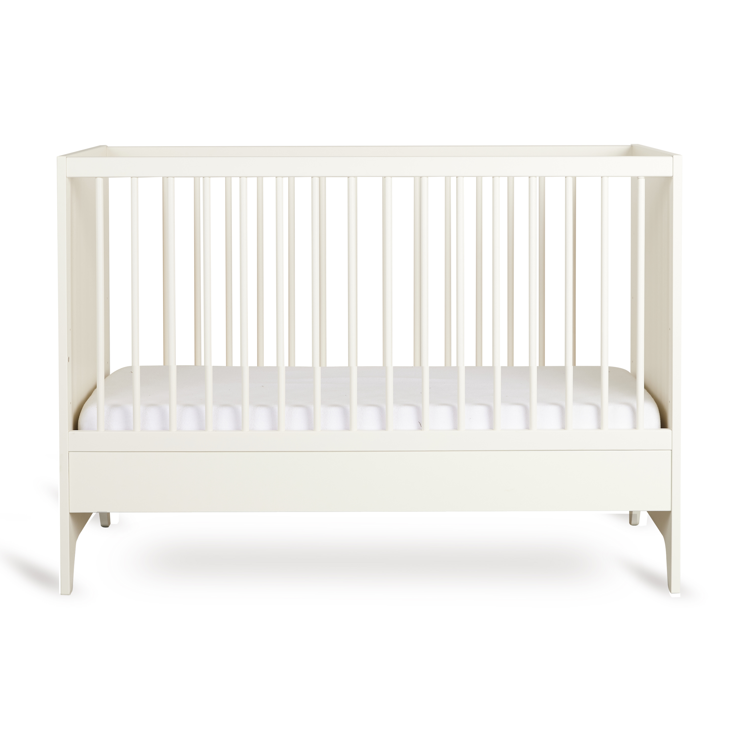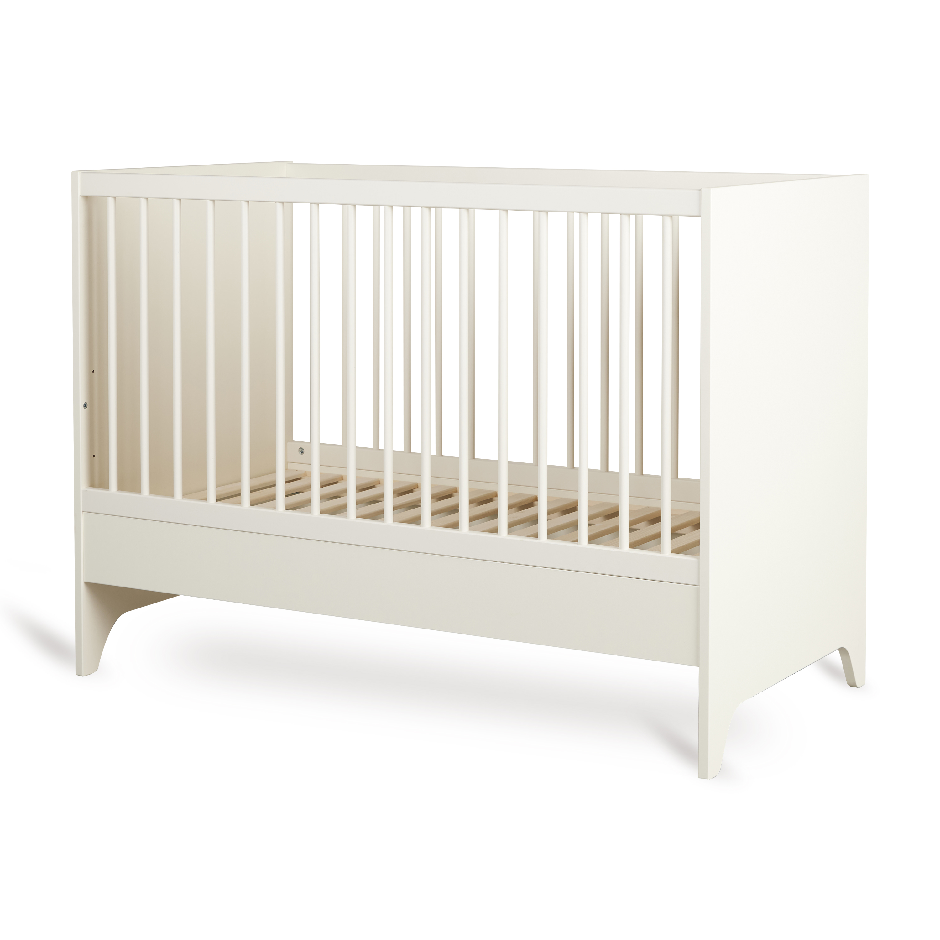 Het Tsugi babybed combineert een licht, modern design met praktische flexibiliteit. Dankzij de verstelbare bodem in drie hoogtes biedt het vanaf dag één comfort en ergonomie voor zowel ouder als baby.Is je kleintje de babytijd ontgroeid? Dan transformeer je het bed moeiteloos tot een knus half-open sofabedje met uitvalbescherming, inbegrepen bij het bed. Zo ontstaat een fijne plek om te lezen, rusten of spelen tijdens de peuter- en kleuterfase.Met zijn afgeronde lijnen, monochrome look en lichte, speelse uitstraling sluit dit bed naadloos aan bij de tijdloze elegantie van de Tsugi-collectie. Een bed dat rust brengt in de kamer en meegroeit met je gezin.
