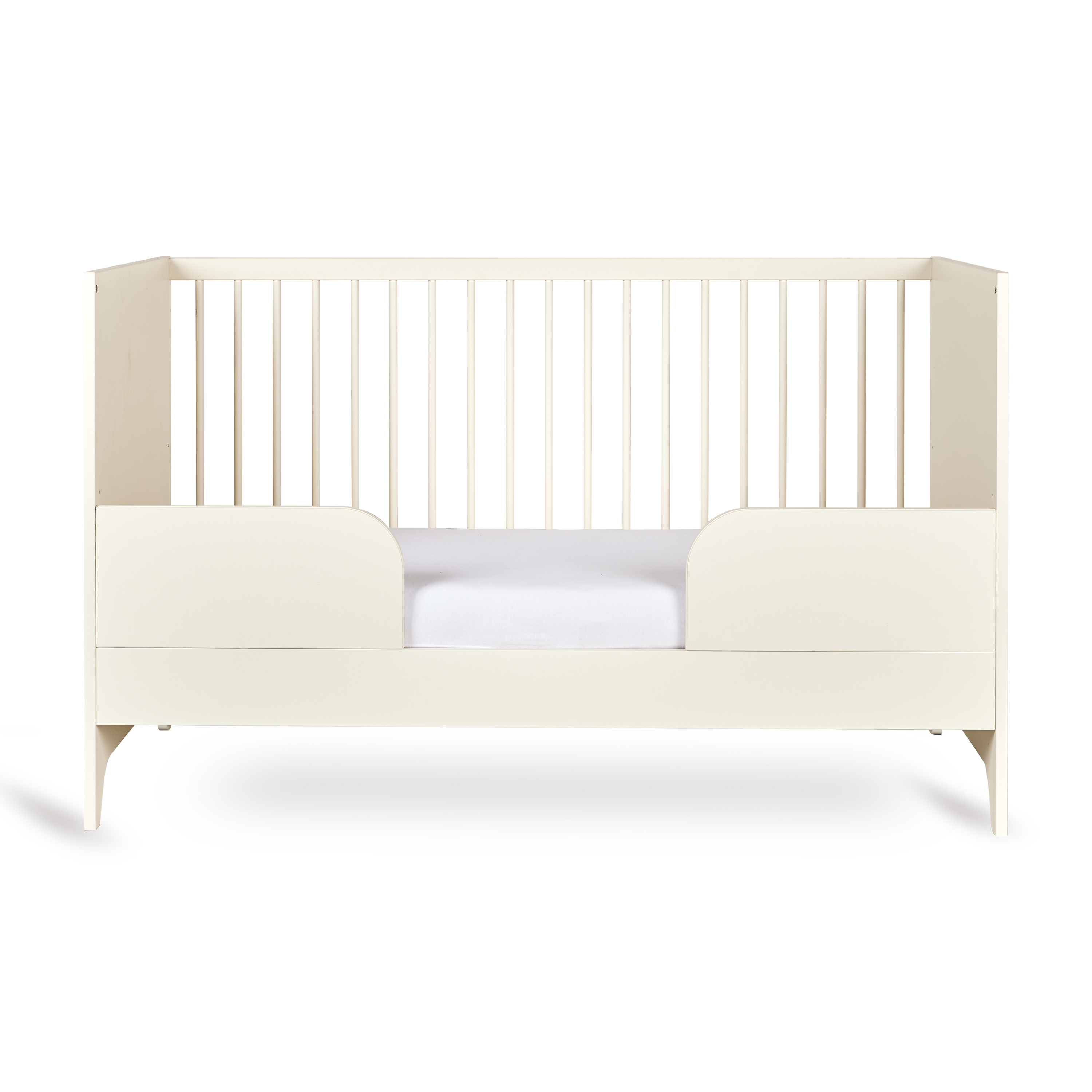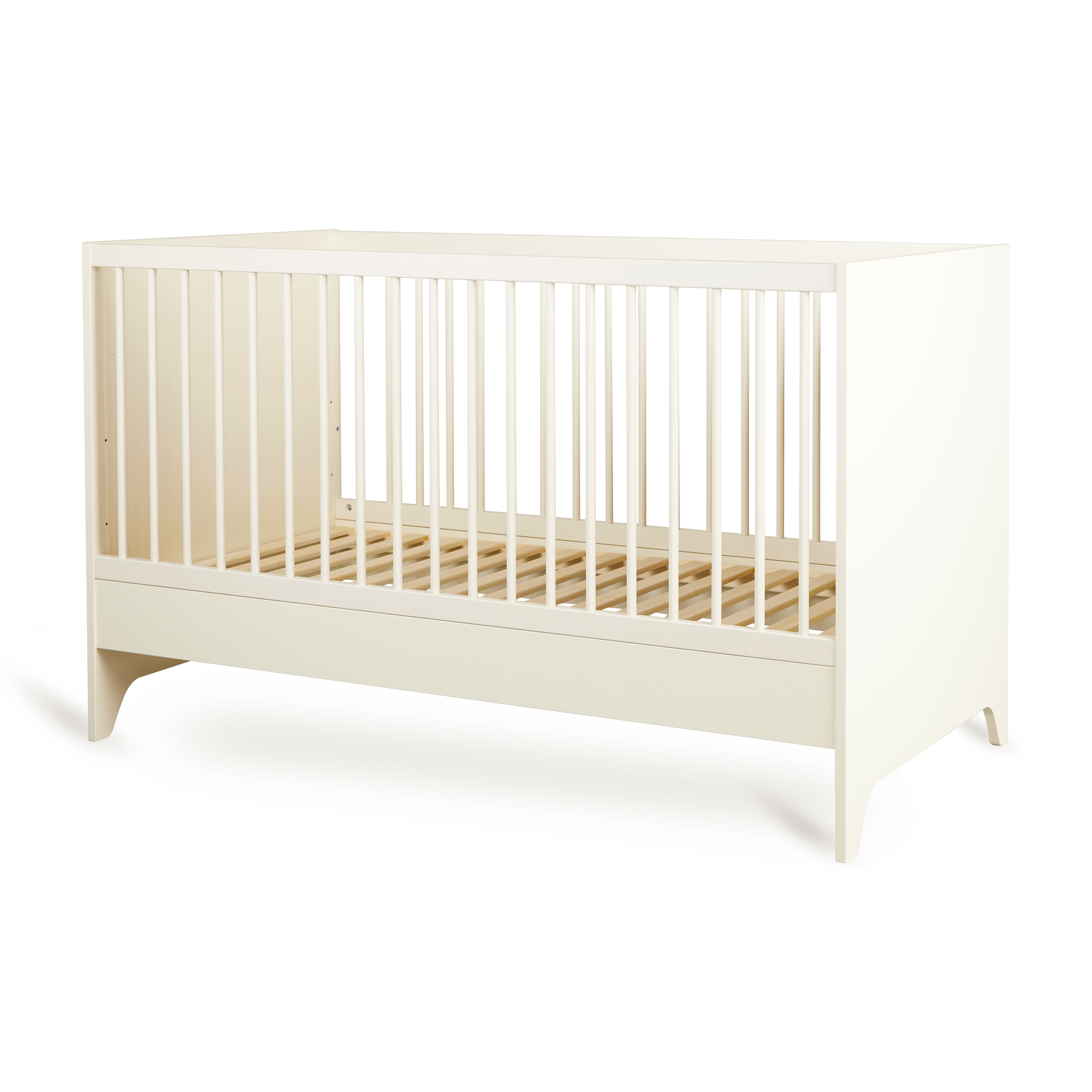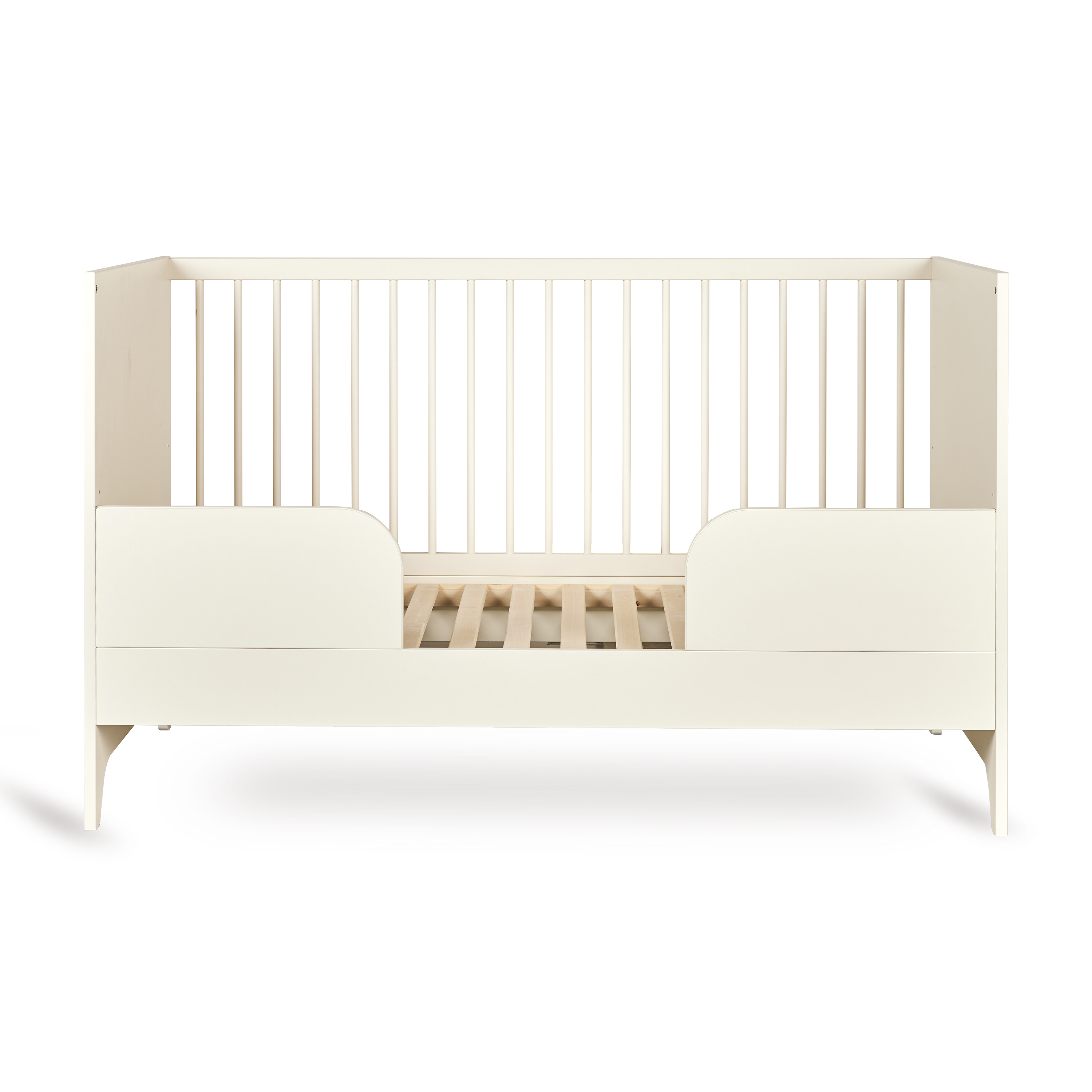 Het Tsugi Meegroeibed combineert een speels en modern design met praktische veelzijdigheid. De verstelbare bodem met drie verschillende hoogtes zorgt voor comfort en ergonomie vanaf dag één, voor zowel ouder als kind.Het groeit moeiteloos mee met de reis van je kleintje: het bed transformeert eenvoudig tot een half-open peuterbedje door één van de spijlerzijdes te vervangen door de inbegrepen uitvalbeschermer. Deze sluit naadloos aan op het ontwerp en biedt extra veiligheid zonder afbreuk te doen aan de lichte, monochrome uitstraling van de Tsugi collectie.Met zijn afgeronde lijnen en tijdloze elegantie brengt dit bed rust en speelsheid in elke kinderkamer. Een design dat meegroeit en perfect past bij de serene sfeer van Tsugi.