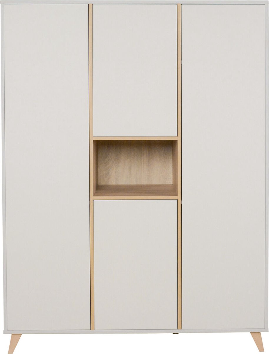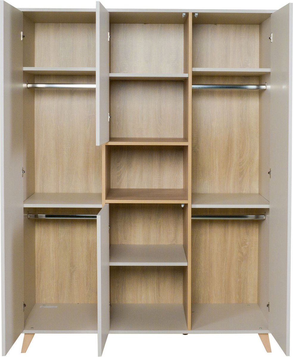 Deze mooie XL kast is van het merk Quax. De kast is voorzien van vier greeploze deuren met acht legplanken en vier kleerroedes. Er is dus heel veel opbergmogelijkheid voor bijvoorbeeld de kleding en andere spulletjes van je kindje. Het onderstel is van massief beuk.