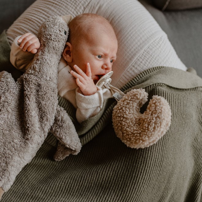 Deze toffe knuffels/warmtekussens zijn gemaakt van organisch katoen pluche en worden op een duurzame manier geproduceerd. De poten en het hoofdje zijn gevuld met pure lamswol. Het is dus niet erg als je kindje deze knuffel in zijn mondje steekt.