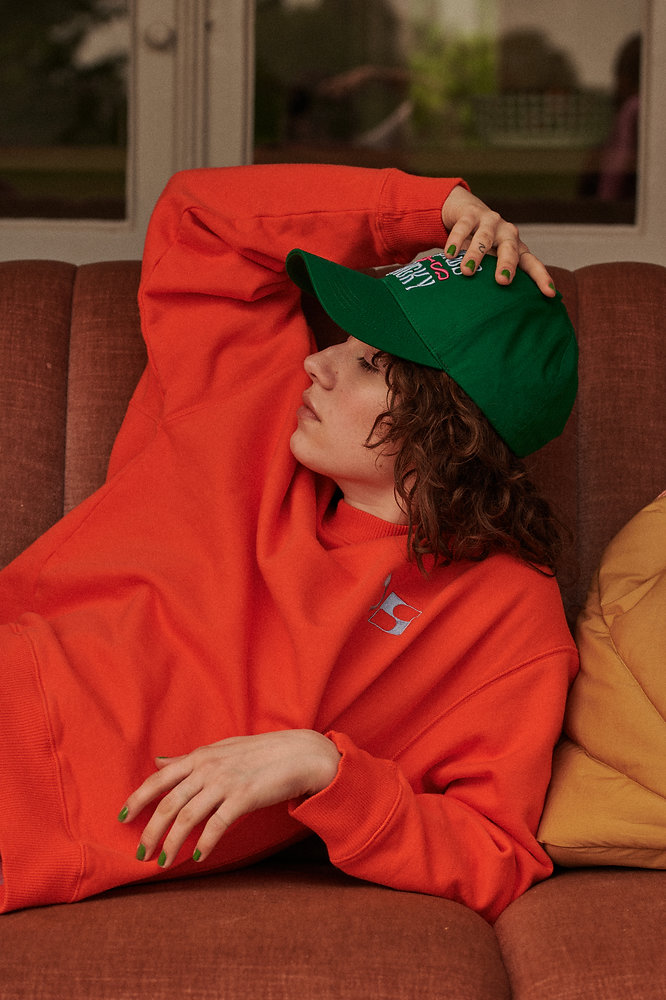 a cotton cap with sticky sis in embroidery on the front. Easy adjustable on the backside. Available in paris green, tulip pink and madeleine beige.