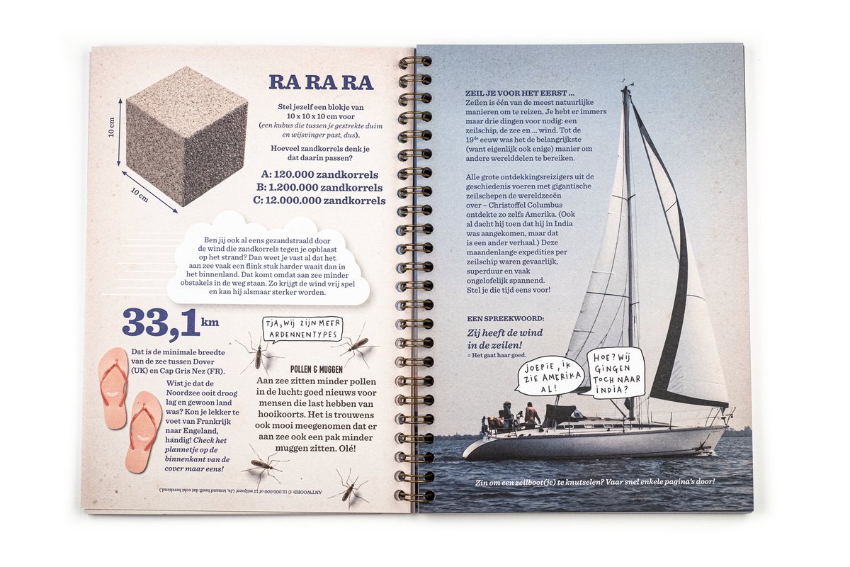 Maar er valt nog zo veel meer te ontdekken … Dat er vossen leven in de duinen, bijvoorbeeld, of wat er juist zo cool is aan kwallen. Hoe je een echte strandjutter wordt, welke zeevondsten je kan vinden en je krijgt er ook een spoedcursus wolkenkunde bovenop.