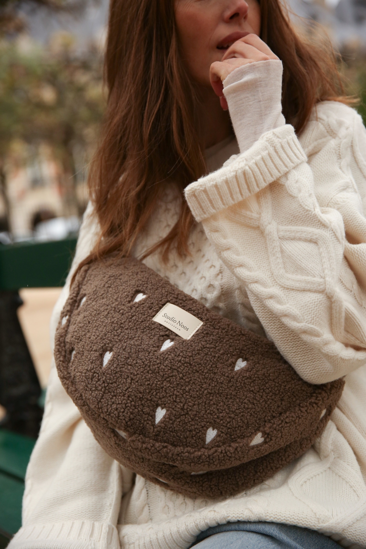 Studio Noos Handtas Fanny Teddy Hearts Brown 39x20x11 cm