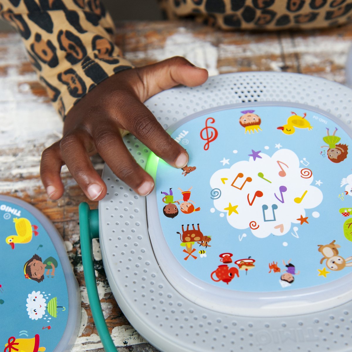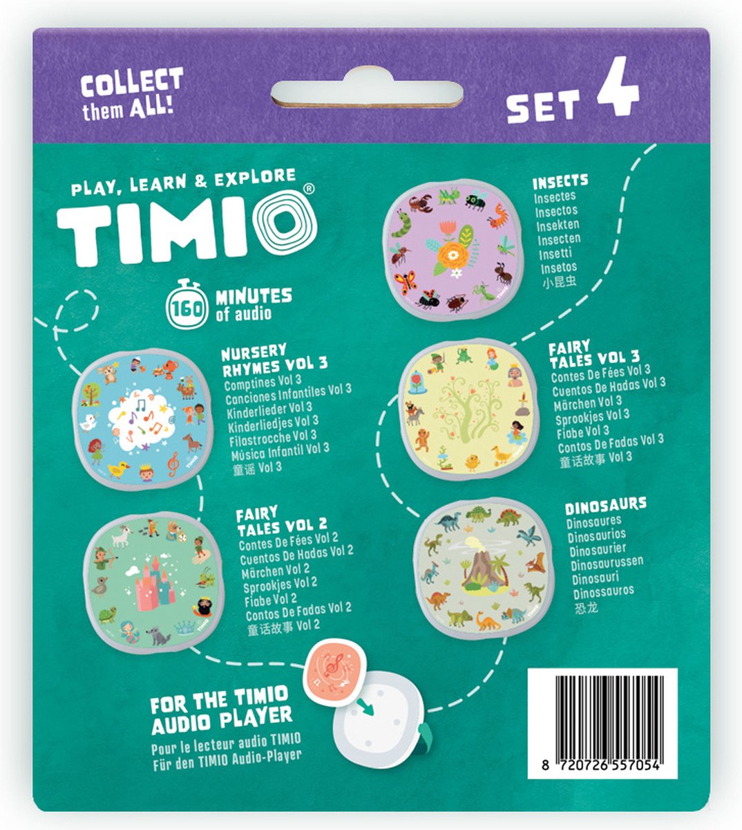 TIMIO biedt magnetische disks met een bibliotheek aan materiaal: van kinderliedjes en slaapliedjes tot sprookjes en woordenschat. Wil je wat meer afwisseling voor de 5 standaard meegeleverde schijven? Bekijk dan zeker eens de 4 uitbreidingssets van TIMIO. Zo hebben je kinderen nog meer speelmogelijkheden!