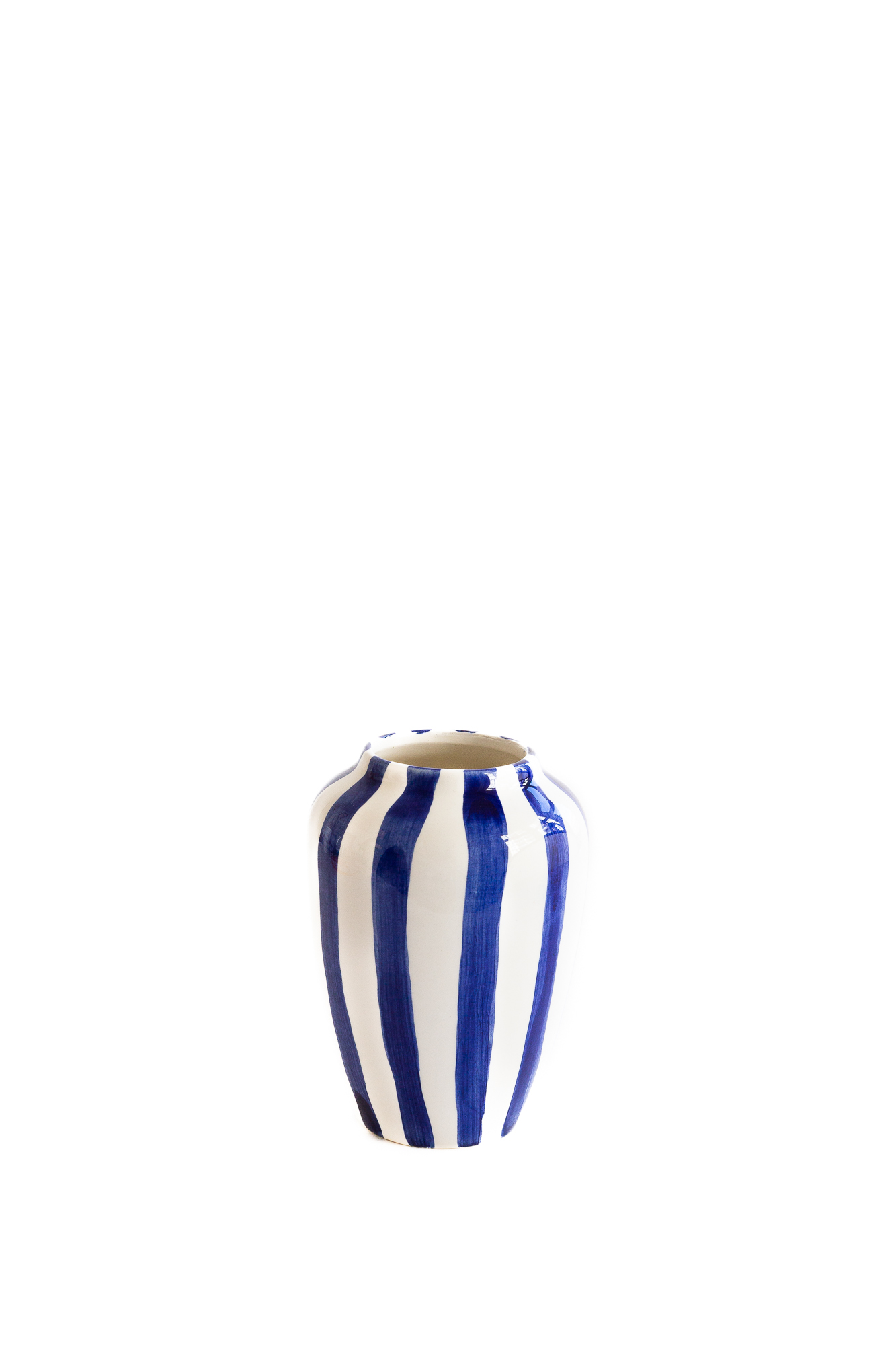 Val Pottery Foolish Vaas Funky Flower S 5.5x15 cm - Blue Stripes - Handgemaakt Keramiek