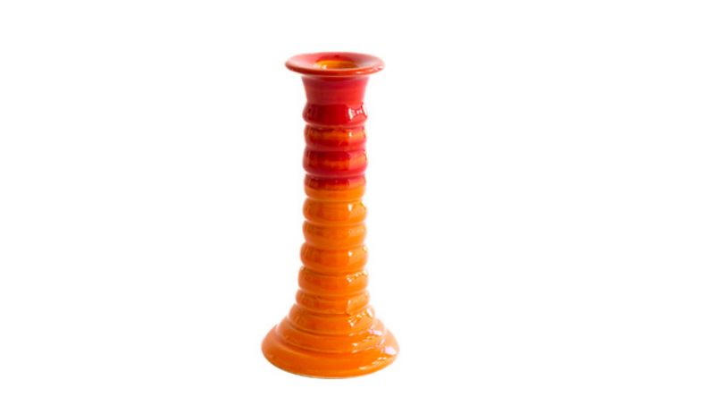 Productinformatie "Val Pottery Marvelous Kaarshouder Marcelo 10.5x22 cm - Orange & Red - Handgemaakt Keramiek"