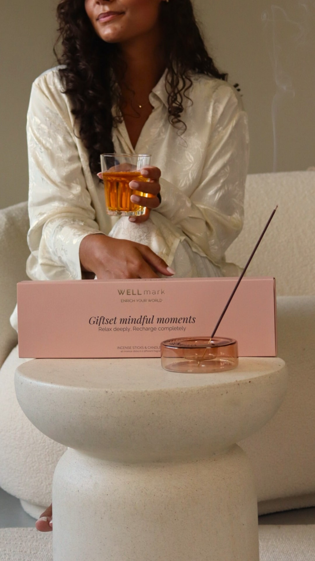 Productinformatie "Wellmark Wierookset Mindfull Moments - Glazen Houder & 20 Wierookstokjes"