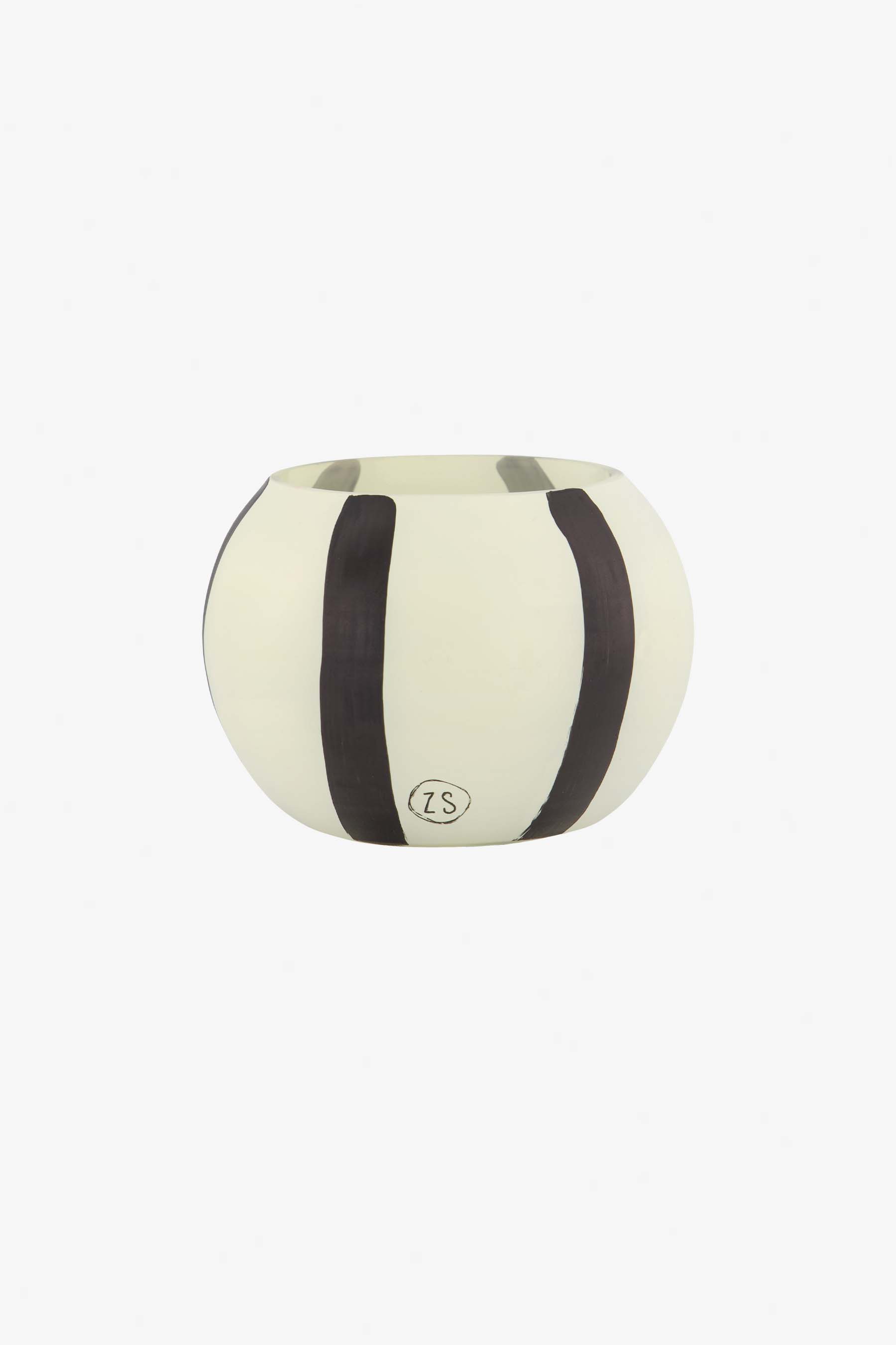 zusss / glazen geurkaars met strepen / zand + antraciet