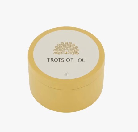 Kaarsjes branden is altijd fijn, zeker bij een gezellig samen zijn. Deze tinnen geurkaars zit in een okerkleurig blikje. Op het deksel staat een pauw en de tekst: trots op jou. Ook erg leuk als kadootje! Steek 'm aan met een Zusss lucifer en geniet van de heerlijke geur terwijl je lekker op de bank zit. Het formaat van het blikje is 8,5x5 centimeter.
